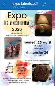 Les Talents de Lucenay – Exposition annuelle – Salle Poly sons, rue du stade – Chants à 18h.