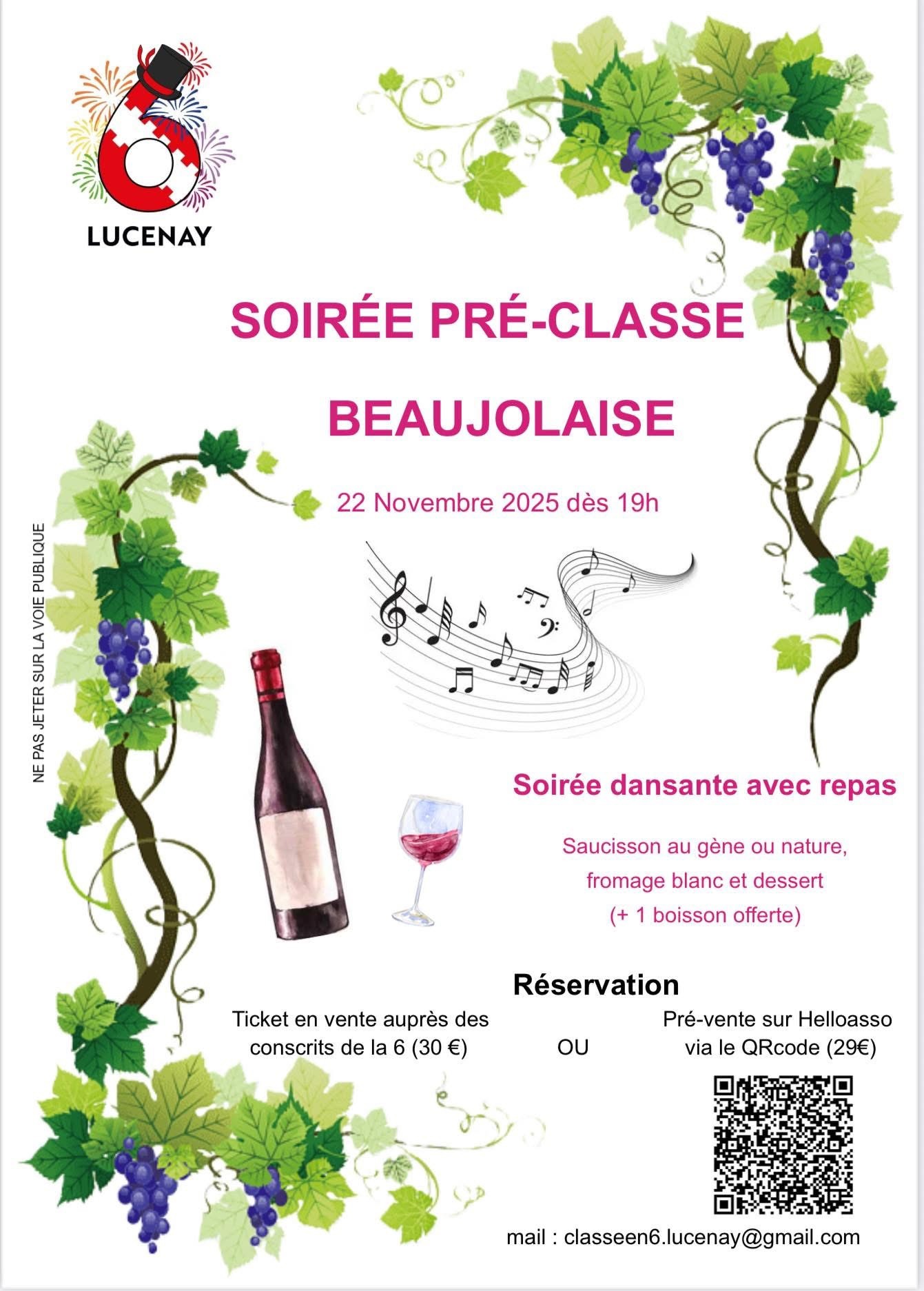 Classe en 6 – Soirée dansante avec repas, salle Poly sons – Ticket en vente auprès des conscrits 30€, ou Helloasso 29€ 22 novembre 2025 à 19 h 00 min Agenda