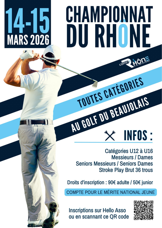 Golf du Beaujolais – Championnat du Rhône – Toutes catégories – Inscriptions sur hello Asso de 14 mars 2026 à 15 mars 2026 Agenda