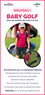 Nouveau : nous lançons cette année 2025/2026 les cours de Baby Golf pour les enfants de 4 à 6 ans.
